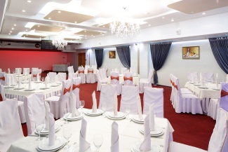 В банкетном зале ресторана «Империя Востока» есть всё необходимое для создания атмосферы торжества: роскошные драпировки, ковры, регулируемое освещение, особое оформление главного стола, сервировка.