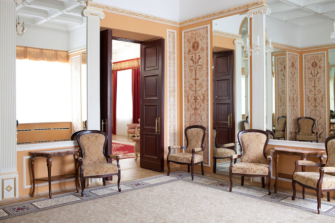 Это здание отличает особая торжественность внешнего облика особняка и царственная роскошь отделки и обстановки внутренних помещений. На стенах Грибоедовского Двореца Бракосочетания №1 – рельефная инкрустация, потолки украшает старинная лепнина, в отделке помещений использовано благородное дерево, украшенное изящной резьбой – все это невольно настраивает на торжественный лад и подчеркивает важность и церемониальность происходящего события. Весь интерьер Грибоедовского Двореца Бракосочетания №1 вы можете посмотреть на фото.